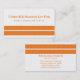 Ce carte de visite moderne et professionnel Simple Sleek Stripes en orange est le choix parfait pour un avocat hors pair. Sharp et minimaliste, ce design dispose d'une double bande de rayures audacieuses. Facile à customiser, ajoutez simplement vos informations commerciales dans les champs de texte fournis. Cliquez sur "Customiser" pour trouver d'autres options de personnalisation.
