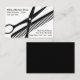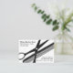 Cartes de visite de salon de coiffure simple mais audacieux conçus avec des ciseaux de coupe et un peigne de style graphique et de carte d'appel générique vous pouvez customiser en ligne dans ce modèle modifiable.