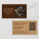 Simple brown and caramel business card for chocolate makers with cacao photo and social media icons. Features QR code, Facebook, Instagram, WhatsApp, Pinterest. Customize name, title, business details, contact info, social handles. Perfect for artisan chocolate professionals.
