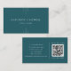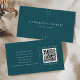 Cette simple carte de visite avec code QR de style Art Déco de la collection Everly présente un fond sarcelle foncé, une typographie parisienne raffinée et des accents de lignes blanches délicats.