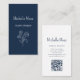 Code QR carte de visite floral bleu marine Botanique, avec un design simple marguerite. Avec des lettres personnalisables en blanc et bleu marine, vous pouvez ajouter vos propres informations. Vous ajoutez votre site Web au champ de code QR pour que vos clients puissent l'analyser. Idéal pour promouvoir votre entreprise de design avec un style professionnel et féminin.