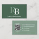 Carte De Visite Simple Green Monogram QR Code | Connect with Me