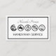 An all white cover features a rectangular frame with a handyman icons tools design. The tools can represent some of the services that you offer e.g. the first roof icon can be for home renovation-repairs, the faucet for plumbing etc. At the top lies your prestigious name with the business name "HANDYMAN SERVICE" at the base of the card.