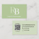 Carte De Visite Simple Monogram Green QR Code | Connect with Me