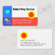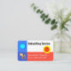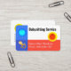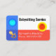 A vertical blue layer (the night) intertwines with the red (the day). The blue moon watches over at night with a gold pacifier and is partnered by the orange sun during the day. At the top of the card is your business name "Babysitting Service" which you can change with your prestigious name and contact details at the base.