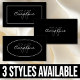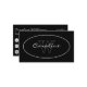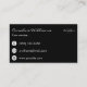 Un carte de visite dans un design simple et élégant en blanc sur noir avec un nom et monogramme dans un ovale sur l'avant et les coordonnées sur le dos.