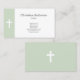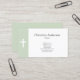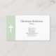 Une carte de visite simple et élégante, avec un arrière - plan vert sur la gauche avec une croix blanche. Une façon très sobre de communiquer pour un pasteur, une église, une communauté chrétienne, etc.