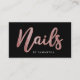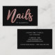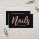 cartes de visite élégants et simples pour votre entreprise Nails, propose un script rose en feuille d'or, sur un arrière - plan noir avec votre nom en couleur blanche . Ajoutez vos détails à l'arrière de la carte. Le Arrière - plan à l'arrière est noir et le texte est en blanc moderne.