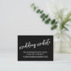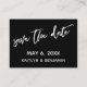 Gardez vos invités mariages dans la boucle avec tous vos détails grâce à ces cartes d'insertion mariages modernes à deux pour un. Les superpositions de texte de typographie Décontractées ont été conçues en utilisant une police manuscrite moderne, en blanc. L'en-tête d'un côté dit "site mariage" et l'autre, "sauvegarder la date". Utilisez les champs modèles pour customiser ces cartes de boîtier avec vos informations personnelles. Le arrière - plan est noir modifiable ; changez-le en n'importe quelle couleur que vous aimez ! // 100 // Conçu par Melody Watson pour Paper Muserie.