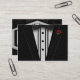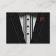 Un smoking noir avec une cravate d'arc et un rose rouge.