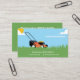 Carte de visite illustrant un paysage avec de l'herbe, du soleil, des nuages et une tondeuse à gazon. Il peut être adapté aux services d'entretien de pelouse et de jardinage professionnel ou aux personnes travaillant dans le domaine de l'aménagement paysager, comme l'aménagement paysager, le tonte et l'entretien de la pelouse, l'entretien des espaces verts, etc.