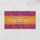 Un regard exotique qui éclairera vers le haut de n'importe quelle occasion de mise en réseau. Paisley orange conçoit contre la violette riche composent l'arrière - plan de ce carte de visite. L'information de contact imprime contre une bande orange de gradient sur l'avant et le dos. Un somptueux recherchent le textile ou les dessinateurs d'intérieurs, les coordonnateurs d'événement ou les magasins de détail. Disponible dans des couleurs alternatives avec les produits assortis.