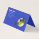 Ce pli au-dessus d'un carte de visite debout a une sorcière drôle en robe verte qui tient à son casquette tout en passant devant une pleine lune dans son balai avec un chat noir qui roule sur son dos sur un arrière - plan bleu profond et vibrant. Customisez toutes vos informations à l'avant, à l'arrière et à l'intérieur avec les modèles.
