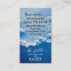 Le carte de visite de l'église représente le ciel bleu et les nuages blancs. Il contient des informations sur votre événement et la Bible Verse Psaume 46:10, "Soyez calme et sachez que je suis Dieu". Les détails de l'église sont listés à l'arrière.