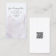 Personnalisez le joli salon Light Pale Purple Crystals / Carte de visite Spa avec votre logo, le nom de votre entreprise, les coordonnées et le propre code QR pour répondre à vos besoins professionnels. Ces élégantes cartes de visite présentent une photographie éthérée de près d'un spécimen de géode minéral à quartz blanc à base de minéraux druzy avec une teinte violette pâle ajoutée et un arrière - plan blanc. Le quartz clair est aussi connu comme le "maître guérisseur" et la "pierre de puissance" et est dit pour amplifier toute énergie ou intention et fait une amélioration ou un ajout unique à vos produits promotionnels de l'entreprise. Idéal pour un massothérapeute de bien-être naturel, un praticien de guérison reiki ayurveda ou un professionnel esthétique.