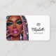 Ce superbe design carte de visite est parfait pour les professionnels du salon de coiffure et d'ongles qui veulent se démarquer. Il présente une femme afro-américaine glamour avec des tresses colorées, des ongles vibrants et une touche pétillante, mêlant style hip hop urbain et chic professionnel. Idéal pour les salons qui s'adressent à des clients audacieux et élégants, le design respire la confiance, la beauté et l'autonomisation dans chaque détail.