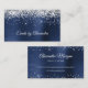 Créez votre propre parties scintillant en argent brillant et cartes de visite en papier satiné bleu marine sombre. Il y a de la place pour plus d'informations de contact sur le côté arrière. Un design girly pour mariage ou planificateur d'événements. Tout le brillant et brillant est créé avec des graphiques numériques imprimés.