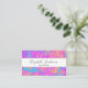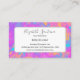 Express votre créativité avec ce design carte de visite éclatant de couleurs vives. Avec un mélange énergique de violet, rose, orange et bleu dans un effet de peinture audacieux ou de style parties scintillant, cette carte est parfaite pour faire une première impression mémorable. Le devant comprend une bande blanche où vous pouvez customiser votre nom et votre titre, tandis que le dos porte le thème coloré avec espace pour vos coordonnées complètes. Idéal pour les artistes, les designers, les créatifs et les professionnels qui veulent que leur marque pop avec la couleur et la personnalité.