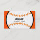 Carte de visite sportive de coach noir et orange de baseball. Personnalisez avec n'importe quel texte.