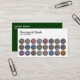 Modèle de carte de visite avec un agencement ordonné attrayant de spots circulaires ou de boutons avec un effet de biseau 3d et d'ombre portée, chacun avec une texture rocheuse différente (tous différents). Détails de l'entreprise sur le devant avec nom et coordonnées sur le dos en blanc sur un arrière - plan vert foncé. Les couleurs peuvent également être customisées. Convient à de nombreux types d'entreprises bien qu'il soit particulièrement approprié pour les entreprises liées à la géologie l'exploitation minière, le forage, etc