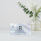 Créé pour les artisans et les créateurs de bijoux, le texte de notre carte de visite design de bijoux de plage nautique est posé sur une mère peinte d'arrière - plan perle dans les tons bleu, mauve et blanc. Le logo monogramme unique ajoute un look moderne à votre entreprise de design. L'initiale de monogramme de sérum peut représenter votre prénom ou votre nom de famille. Dans cet exemple, nous l'avons utilisé pour le nom de famille. Votre prénom est présenté dans une police sans serif élégante en majuscules, avec espacement personnalisé. En-dessous, vous trouverez votre nom d'entreprise en majuscules... et une étoile de mer gris-bleu subtilement colorée qui correspond aux motifs de vos cartes de bijoux. Le verso de la carte contient les détails pertinents dont vos clients auront besoin pour vous contacter. Tous les textes à l'avant et à l'arrière peuvent être facilement révisés sur le modèle de personnalisation.
