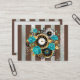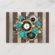 Carte De Visite Steampunk Clock and Turquoise Roses on Striped