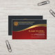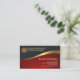 Une conception exquise avec une équitation de vague d'or de faux sur une étendue rouge gris-foncé et lumineuse. Au-dessus de au coin inférieur se trouve votre nom et fonction prestigieux à côté des détails de contact. Juste au-dessous de ceci est une option de slogan. Au nord au coin gauche supérieur, sont le logo de graphique d'or de faux. Près de lui sont la raison sociale et le type de services que vous pouvez offrir.