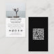 Carte de visite moderne noir et blanc avec des icônes de médias sociaux et une photo sur le devant. Il dispose d'un code QR scannable sur le dos. Ajoutez votre identifiant de compte, la description de travail ou les offres, ainsi que de l'espace pour ajouter votre courrier électronique, votre site Web et tout texte personnalisé dont vous avez besoin. Supprimez ou ajoutez des icônes de médias sociaux et personnalisez la carte en cliquant sur le bouton pour modifier la conception.