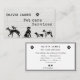 Un carte de visite original et original, parfait pour un service de garde d'animaux, marcheur de chiens, gardien de chiens ou garde de chiens. Le design se compose d'un mur en brique blanche avec texte typographique qui lit votre nom et services de soins pour animaux. L'art moderne de style graffiti est au fond du mur sous la forme de cinq chiens dont un whippet, chihuahua, Labrador, dachshund et jack Russel. Personnalisez-vous en ajoutant à l'arrière vos coordonnées et vos coordonnées complètes.