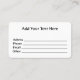 Carte de visite, taille : États-Unis : 8,9 cm x 5,1 cm, papier : Premium Soie, coins : Carré