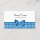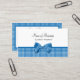 Un joli carte de visite en plaid bleu et blanc de style champêtre avec un ruban bleu ceinturé attaché dans un joli arc. Personnalisez ce design féminin en ajoutant votre nom et votre profession. Image imprimée plate, pas l'arc réel.