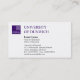 Un profil/modèle de carte de visite a conçu pour convenir à une école, à l'université, à l'université ou à n'importe quel genre d'établissement d'enseignement. Cependant il pourrait également être adapté à d'autres utilisations. L'image de logo doit être remplacée par votre logo, alternativement il pourrait être remplacée par un logo décoratif de symbole d'une de polices de l'image de Zazzle. Le dos de cette conception a été laissé le blanc en accord avec le style. L'idéal pour prendre des notes, ou peut être encore customisé.