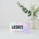 Joli design carte de visite de cils et sourcils avec une texture colorée imitation holographique et une police calligraphique élégante.