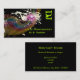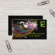 Carte de visite de style rétro pour dj's, musiciens et autres entreprises liées à la musique. Cette passionnante image musicale à thème est un design rétro funky d'un arc-en-ciel couleur pastel avec des notes de musique multicolores foncées sur des morceaux de partitions explosant vers l'extérieur. Les papillons et les éclaboussures de peinture semblent éclater du centre. L'arrière - plan est un spectacle intense qui stoppe le vert citron.