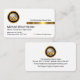 An all white cover is accentuated by a faux gold tab near the card's center. Riding on this gold tab of success is your business name with a creative gold "home roof-electric saw" logo you can use. This is followed by your prestigious name, job title and the contact details. A slogan caption option is located at the lower right corner.