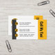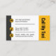 A white cover features a vertical grey and yellow taxi colored striped design. The grey layer houses your business card details in their respective yellow buttons ; Change them accordingly to suit your own service needs. The business name is inside the yellow layer and is held vertically.