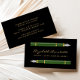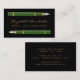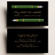 Cet élégant carte de visite notaire moderne présente une paire d'illustrations vintages vertes à stylo fontaine. Personnalisez-le avec votre nom en écriture manuscrite de couleur or sur un arrière - plan noir, et ajoutez des informations supplémentaires sur le contact et la commande au verso.