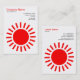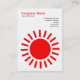 Modèle de carte de visite avec un symbole Sun. Nom de l'entreprise, type d'entreprise et adresse sur le devant avec nom, titre de l'emploi, téléphonie, adresses web et e-mail sur le dos, avec la même disposition.