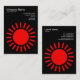 Modèle de carte de visite avec un symbole Sun. Nom de l'entreprise, type d'entreprise et adresse sur le devant avec nom, titre de l'emploi, téléphonie, adresses web et e-mail sur le dos, avec la même disposition.