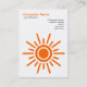 Modèle de carte de visite avec un symbole Sun. Nom de l'entreprise, type d'entreprise et adresse sur le devant avec nom, titre de l'emploi, téléphonie, adresses web et e-mail sur le dos, avec la même disposition.