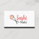 Un grand carte de visite pour les restaurants de sushi conçus en noir, rouge et blanc.