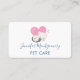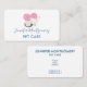 Un carte de visite avec une adorable illustration graphique. Un chaton blanc avec une jolie image empreinte de patte sur sa fourrure. Dormir tranquillement. Un grand coeur rose derrière elle et quelques petites étoiles aussi. Arrière - plan vert menthe.
