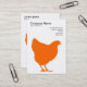 Modèle de carte de visite avec un symbole de poulet (Hen). Nom de l'entreprise, type d'entreprise et adresse sur le devant avec nom, titre de l'emploi, téléphonie, adresses web et e-mail sur le dos, avec la même disposition.