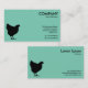 Un modèle de carte de visite élégant et attrayant avec un symbole de poulet (Hen) simple mais attrayant. Détails de l'entreprise principale sur le devant, avec le nom et le contact personnel sur le dos, ainsi qu'une répétition du motif du symbole. Convient à une variété d'entreprises agricoles, alimentaires, etc. Cette carte est entièrement personnalisable.