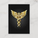 Symboles Caduceus polygonaux or sur arrière - plan noir isolé. Basse poly symbole de la médecine.