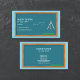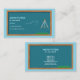 Un carte de visite pour un professeur de mathématiques ou de géométrie avec un damier bleu dans un cadre en bois, un compas et l'équation de la loi de Newton de la gravitation universelle. Les informations téléphoniques et électroniques sont décorées par des icônes. Les coordonnées complètes sont disponibles au verso.
