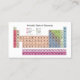 Une carte de visite blanche avec le tableau périodique des éléments comprenant les 118 éléments atomiques aux couleurs pastel : parfait pour un professeur de sciences ou de physique !