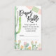Taco à thème fiesta de couleur pastel à propos d'un insert de tombola de baby shower bébé avec cactus à fleurs et bannière mexicaine en rose et menthe.