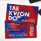 Un design de Taekwondo à haute énergie qui rayonne le mouvement et la force. L'audacieux arrière - plan tourbillon rouge et bleu fait écho au Taegeuk — symbole d'équilibre et de vitalité — tandis que la typographie à texture argentée ajoute un côté élégant et moderne. Le Hangul vertical (태 권 도) à l'envers apporte une authenticité culturelle, parfaitement équilibré par la disposition minimaliste de l'entraîneur sur le devant. Idéal pour les professionnels de Taekwondo qui veulent que leur marque véhiculent confiance, action et maîtrise.