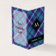 Design écossais vert mer, violet et bleu. Motif sans couture. Texte et monogramme personnalisés.